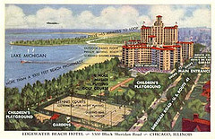 Thank you to Chicago writer Adam Langer for his Reader piece “Remembering the Edgewater Beach Hotel,” which was reprinted here and Chuckman’s Chicago Nostalgia for the old postcard images.