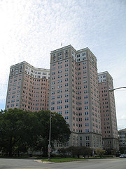 This condo building is all that’s left of the luxurious one-thousand-room Edgewater Beach Hotel, built in 1916 by the Chicago architects Benjamin Marshall and Charles Fox—also know for designing the Drake. For the next thirty-five years or so, the Edgewater Beach Hotel was the most glamorous ticket in town. The icons of the era opted to stay here, from Sinatra to FDR and Eisenhower to Babe Ruth, Charlie Chaplin, Nat King Cole, Judy Garland, Lou Gehrig, and Marilyn Monroe.