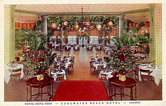 Thank you to Chicago writer Adam Langer for his Reader piece “Remembering the Edgewater Beach Hotel,” which was reprinted here and Chuckman’s Chicago Nostalgia for the old postcard images.